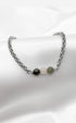Bracciale unisex realizzato in acciaio inossidabile (senza nichel) con 3 pietre che attraggono abbondanza e prosperità: Pirite, Labradorite e Quarzo Rosa.